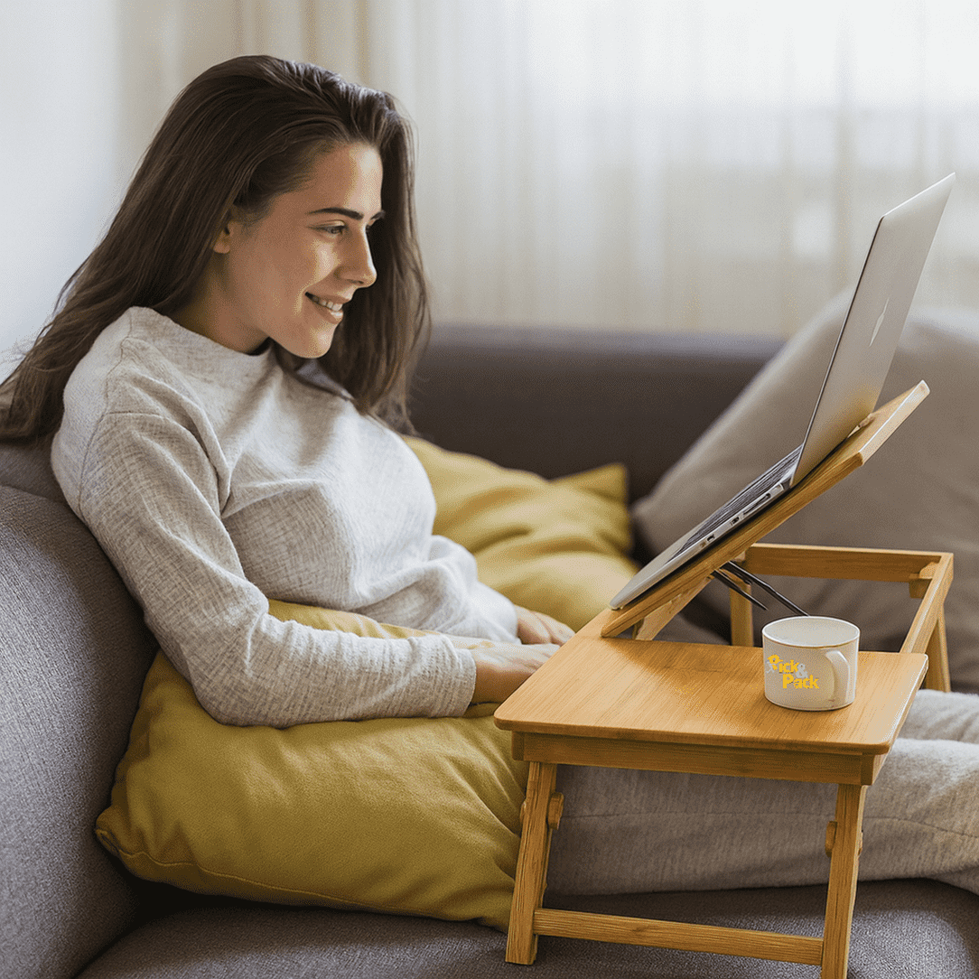 এই টেবিলটি এমনভাবে ডিজাইন করা হয়েছে যাতে আপনি বিছানায় বসে, সোফায় বসে বা মেঝেতে বসে সহজেই ল্যাপটপ ব্যবহার করতে পারেন। এটি হালকা ও বহনযোগ্য হওয়ায় খুব সহজেই এক জায়গা থেকে অন্য জায়গায় নিয়ে যাওয়া যায়।